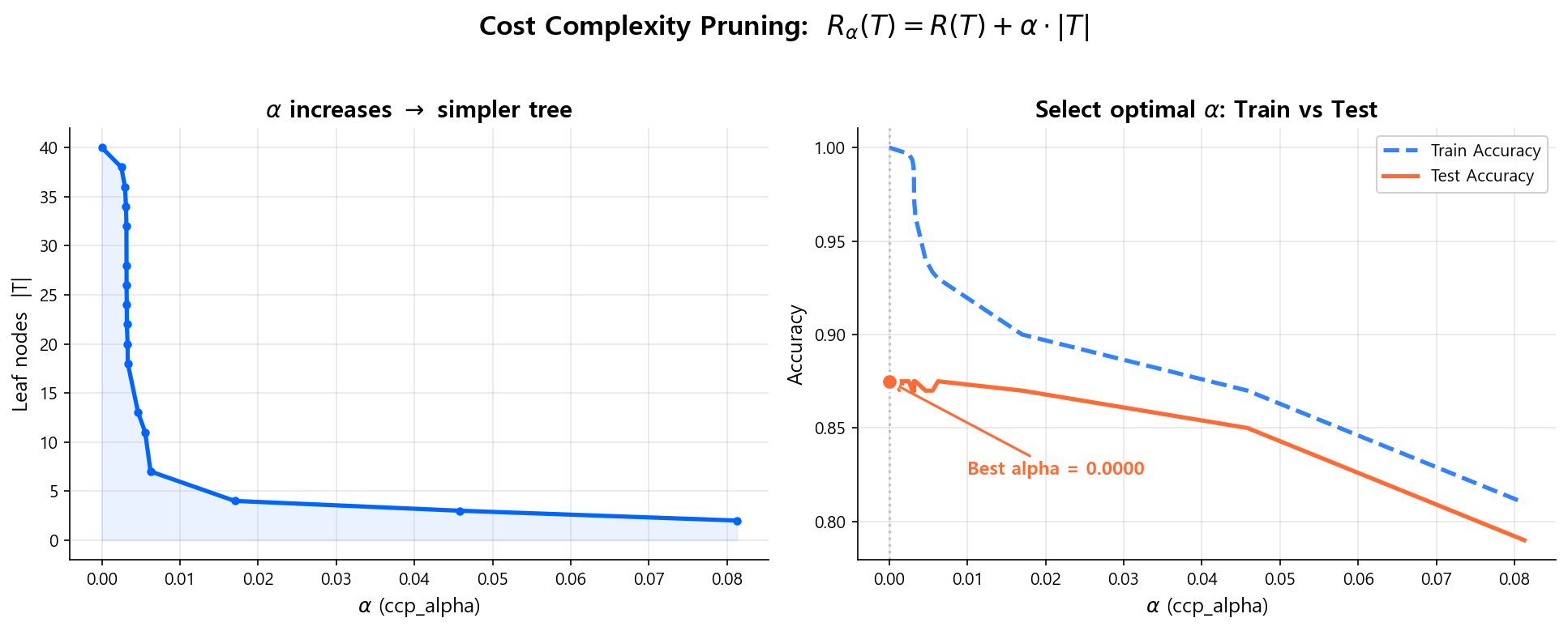 - \(\alpha\): 페널티 계수 — 클수록 단순한 트리를 선호